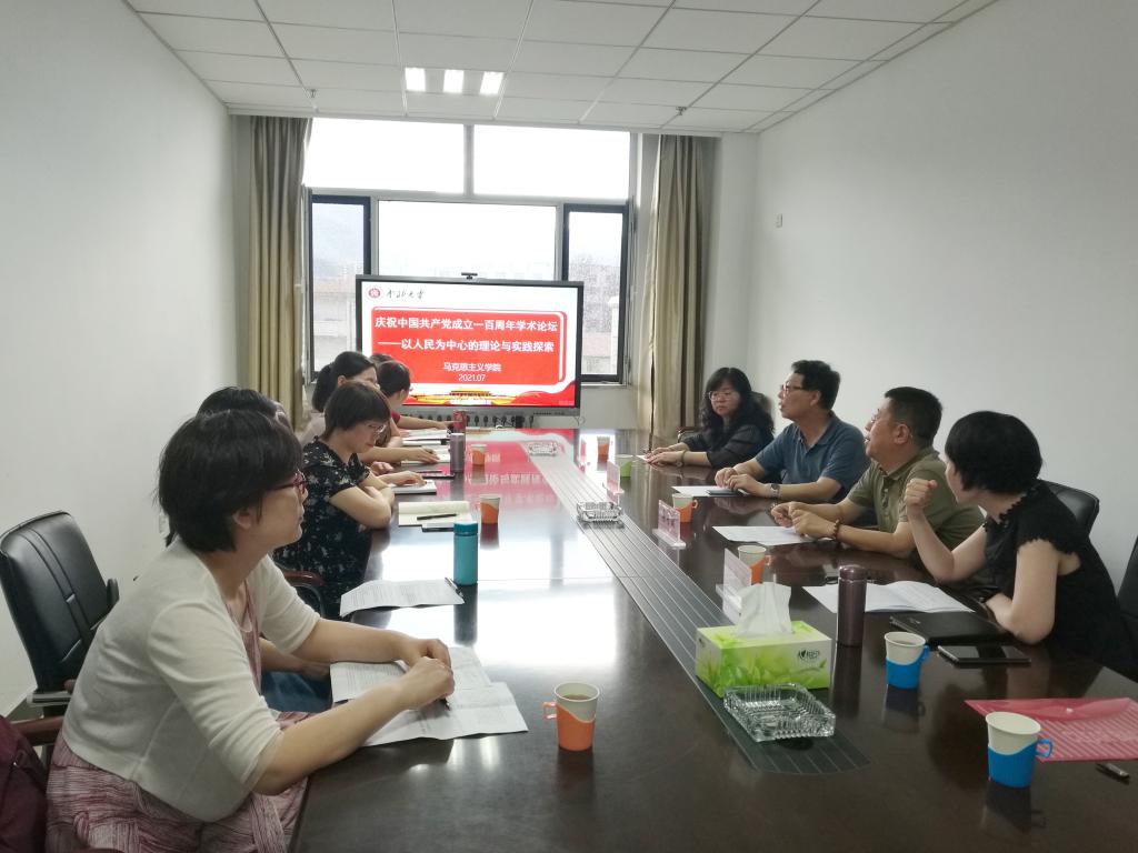 为庆祝中国共产党成立100周年,认真学习贯彻习近平总书记在庆祝中国共产党成立100周年大会上的重要讲话精神,7月8日,bwin必赢中国官网举办“以人民为中心的理论与实践探索——传承红色基因 用好红色资源”的高端学术论坛。该论坛由学院院长赵笑蕾教授主持,山西社会科学院高专城研究员、陕西师范大学bwin必赢中国官网博导阎树群教授和山西省社会科学院马艳研究员做了精彩的学术发言。学院部分骨干教师参加了本次学术论坛。