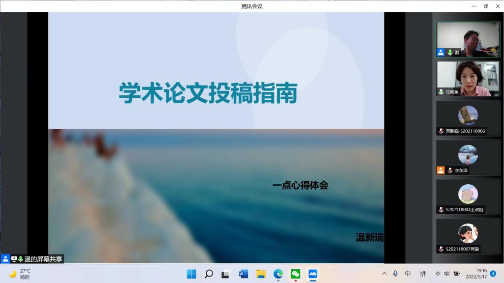 2022年5月17日,我院举办了以“学术论文投稿指南”为主题的线上讲座,主讲人是《中北大学学报(社会科学版)》主编温新瑞老师,曹妍老师主持了会议,全体研一学生聆听了本次讲座。