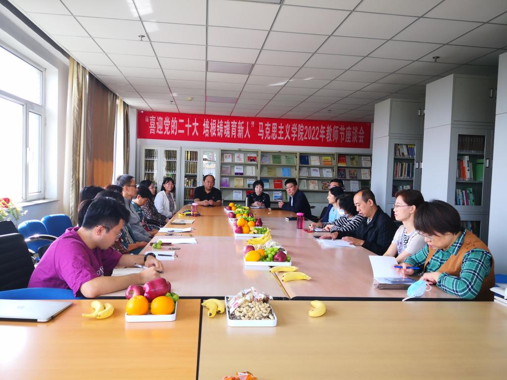 赵笑蕾院长向大家致以诚挚的节日问候,指出在喜迎党的二十大、庆祝第38个教师节之际举办此次座谈会特别有意义。她通报了学院一年来在教学科研、学科建设、队伍建设等方面取得工作成绩,指出学院的发展既是大家共同努力的结果,也离不开榜样的引领示范。学校冲击双一流,马院更要勇于向前,为学校双一流建设作出马院人的贡献。学院将极力为思政课教师搭建更宽广的学术平台,提供更多学术交流的机会。希望老师们谨记习近平总书记对广大思政课教师提出的“四有”好老师、“四个引路人”、“四个相统一”、“六个要”等要求,踔厉奋发,勇于创新、锐意进取,为学院发展贡献自己的力量。