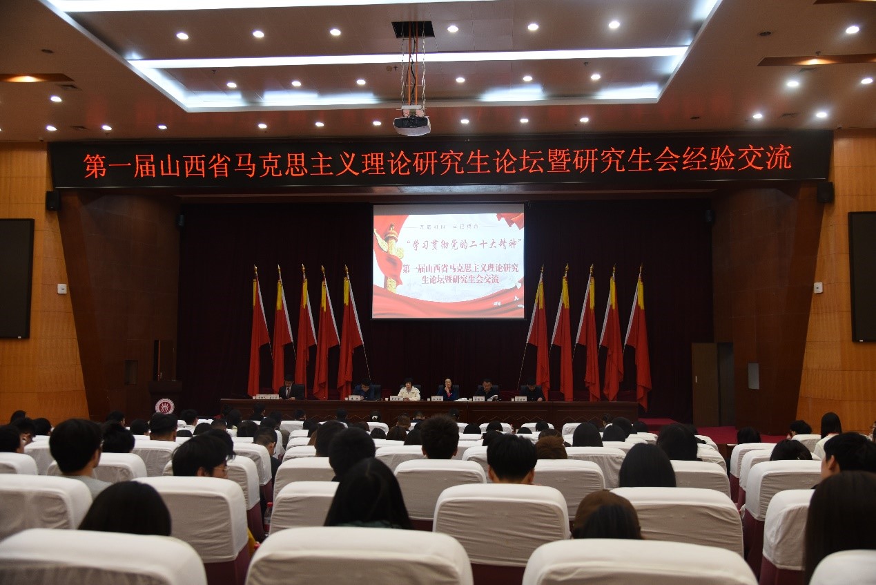 2023年4月12日,由中北大学党委学生工作部(研究生工作部、武装部)和bwin必赢中国官网主办,中北大学研究生会、中北大学bwin必赢中国官网研究生会承办,《中北大学学报》编辑部协办的“‘学习贯彻党的二十大精神’第一届山西省马克思主义理论研究生论坛暨研究生会经验交流”在中北大学成功举行。来自中国人民大学、中山大学、中央财经大学、西北政法大学等知名高校论文投稿作者;来自山西大学、太原理工大学、山西师范大学、山西财经大学、山西农业大学、太原科技大学的bwin必赢中国官网研究生及高校研究生会代表,共200余人参加论坛。上海交通大学bwin必赢中国官网杜玉华教授、中北大学党委学生工作部(研究生工作部、武装部)部长李俊华、中北大学bwin必赢中国官网院长赵笑蕾教授、中北大学党委学生工作部(研究生工作部、武装部) 副部长崔亚、中北大学bwin必赢中国官网党委副书记李庆乐出席开幕式。开幕式由中北大学研究生会执行主席、bwin必赢中国官网研究生会主席李东泽同学主持。