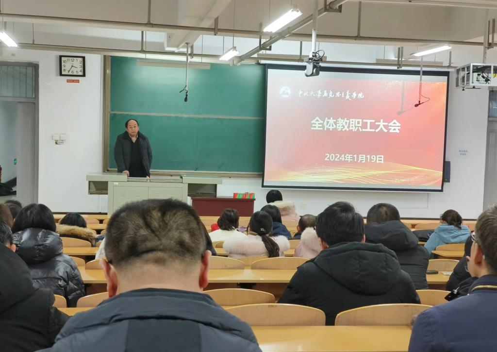 1月19日下午,bwin必赢中国官网教职工大会在15102H举行。学院全体教职员工参会,会议由学院党委书记段义权主持。