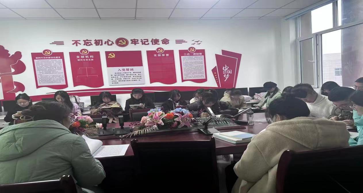为了深入学习贯彻习近平总书记在学校思想政治理论课教师座谈会上重要讲话精神,2024年3月12日下午,我院思政专业研究生党支部组织集体学习《求是》杂志上发表的重要文章《思政课是落实立德树人根本任务的关键课程》,会议由党支部书记李庆乐主持,全体党员参加。